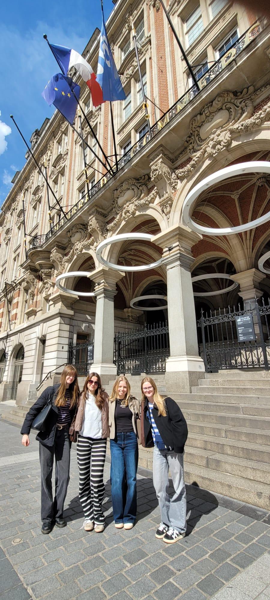 Bei strahlendem Sonnenschein sind Nina, Ella, Angelica und Marie (alle Q1) am Sonntag in der nordfranzösischen Metropole Lille und anschließend in Mouvaux angekommen. Vermittelt vom Städtepartnerschaftsverein Neukirchen-Vluyn e.V. absolvieren sie einwöchige Praktika im Kulturamt unserer Partnerstadt, in einem Anwaltsbüro, einer Zeitarbeitsfirma und einer Werbeagentur. Die Praktika sind ein wichtiger Baustein für das JSG als Europaschule in NRW.