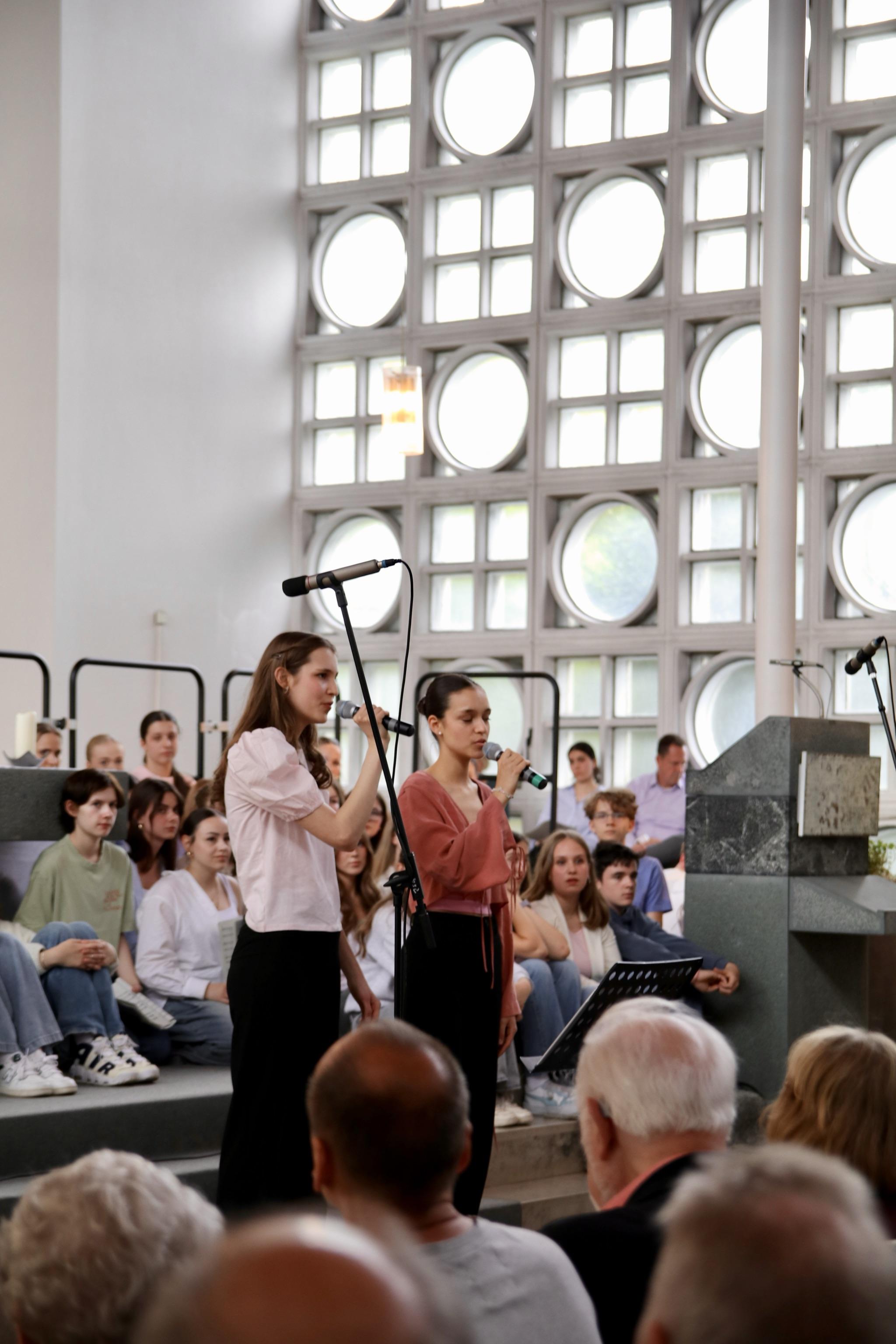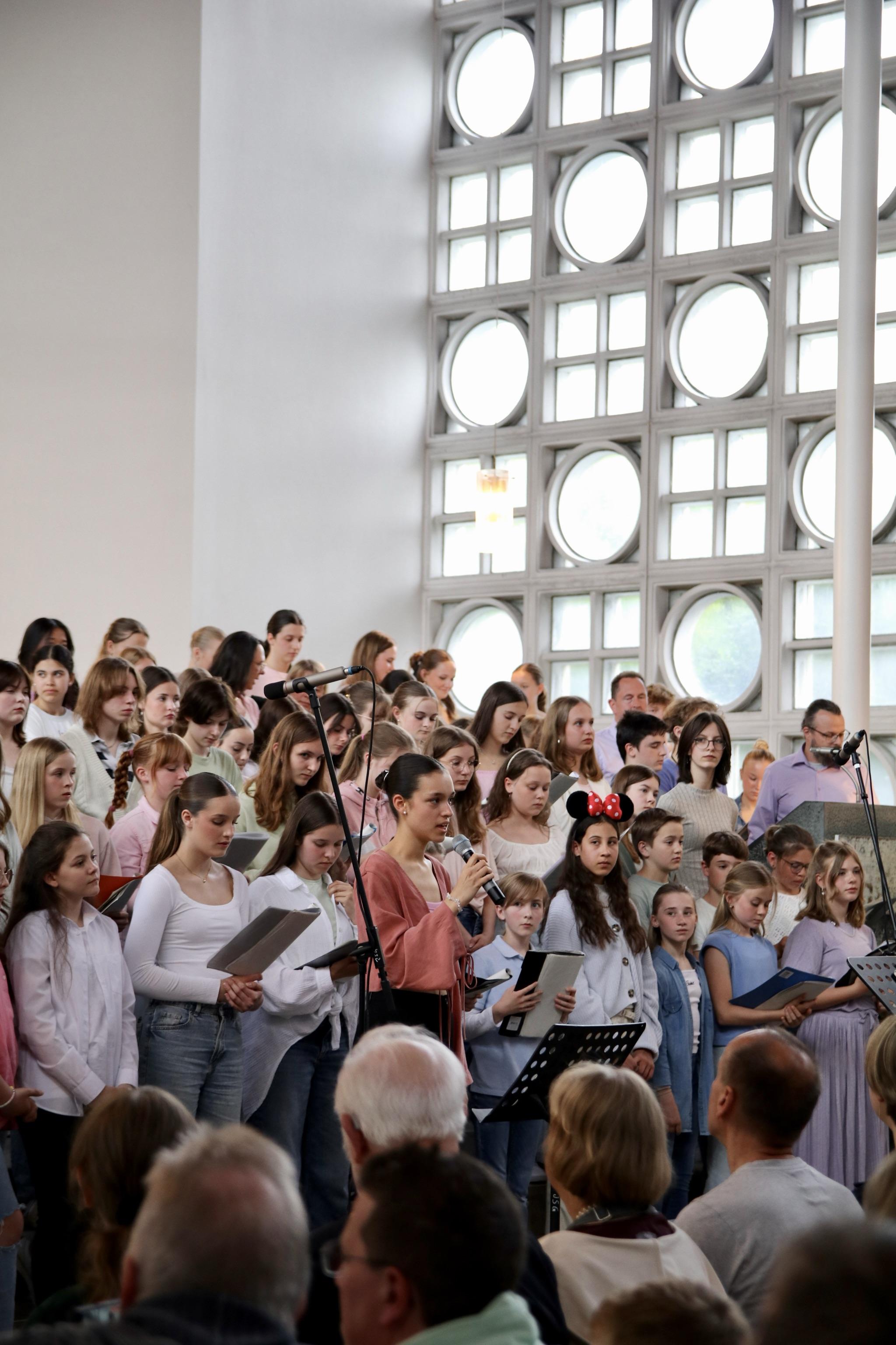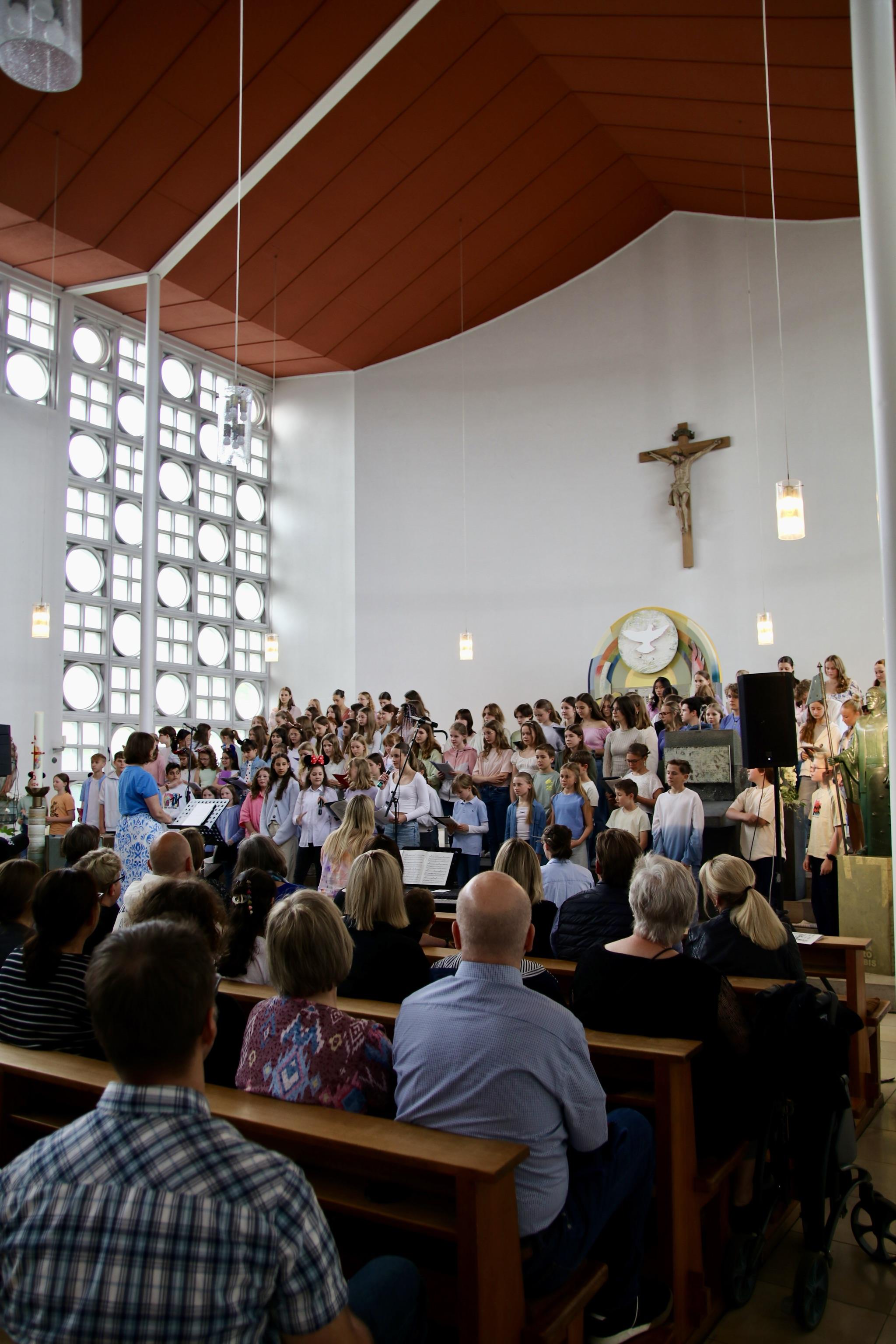 Dass schlechtes Wetter einem nicht die Laune vermiesen muss, zeigten unsere Schulchöre am 13. Juni 2024 in der St. Quirinus Gemeinde in Neukirchen- Vluyn. Die Kirche war an diesem Abend nicht nur gut besucht, sondern regelrecht überfüllt.