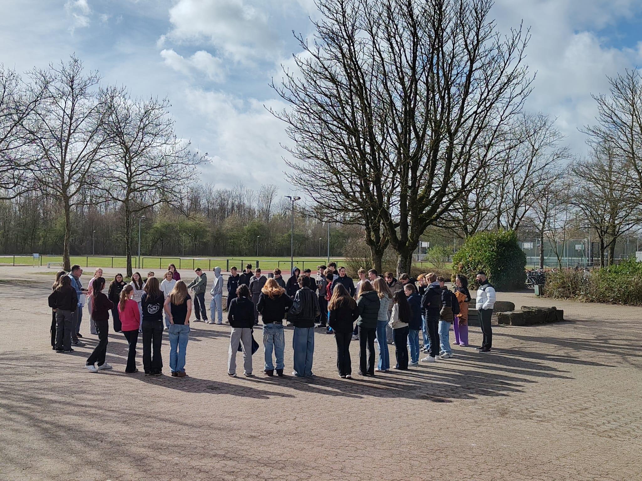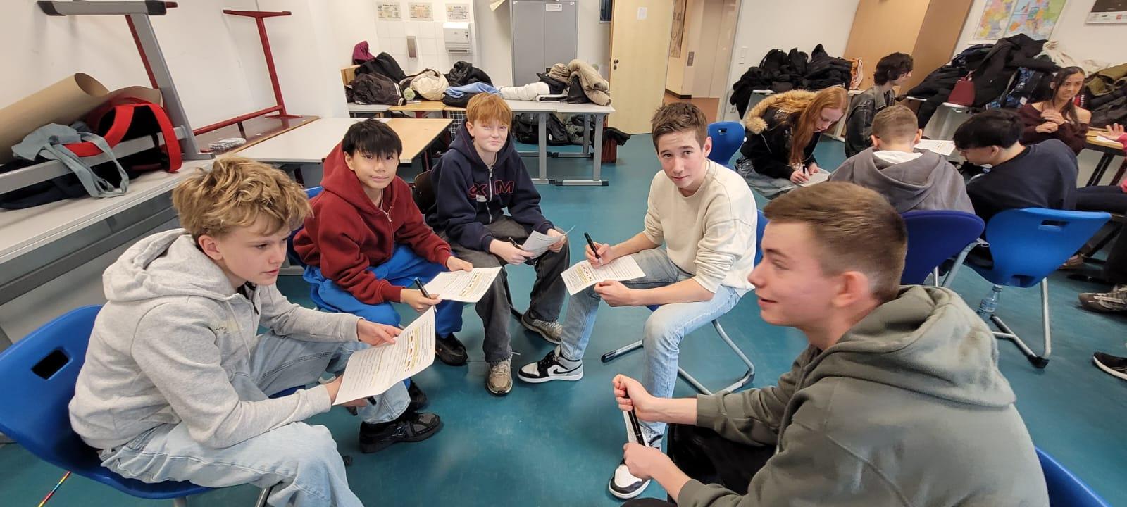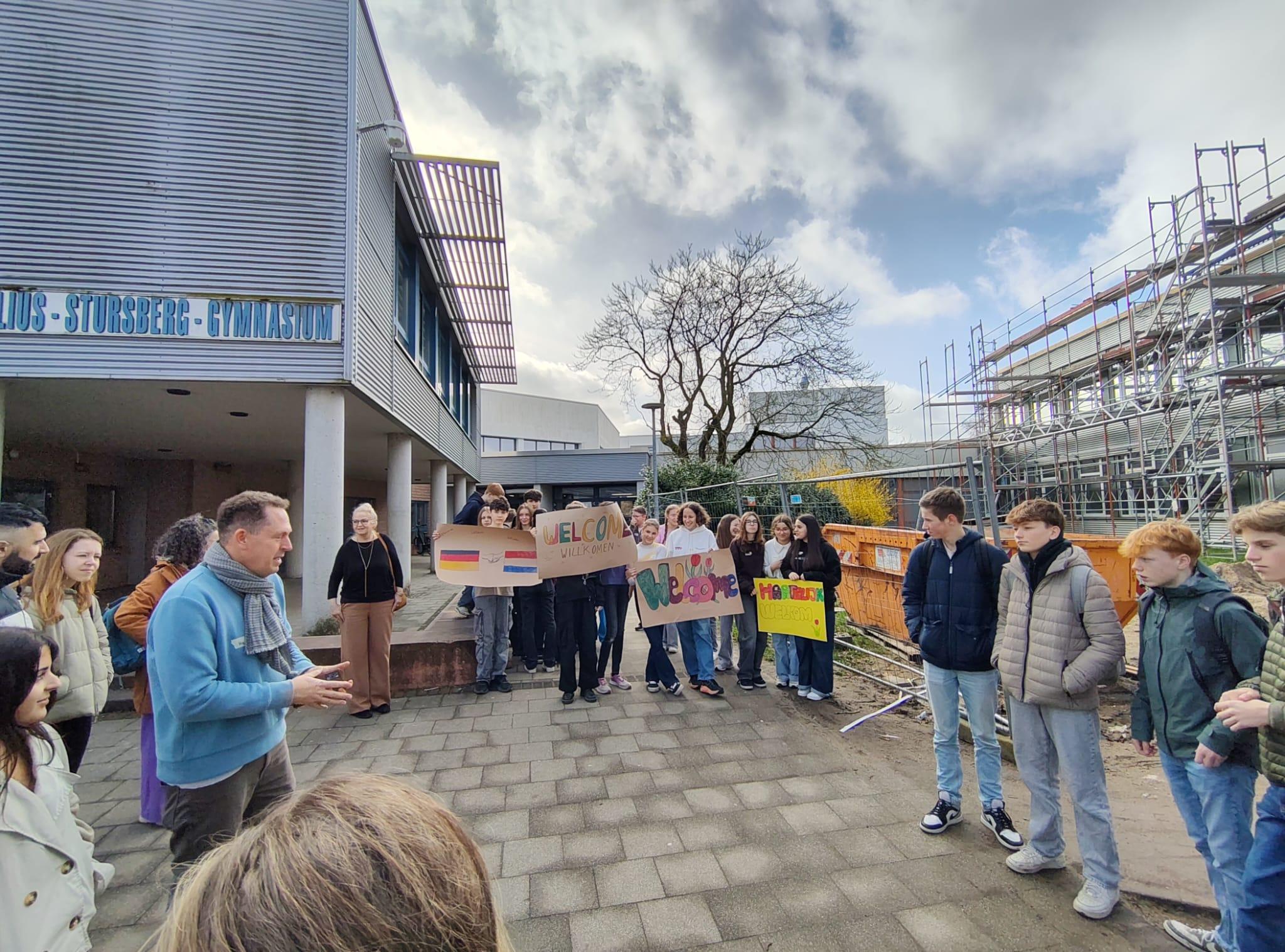 Am 12. März 2026 durfte die Klasse 8c eine Gruppe gleichaltriger Gäste vom Dorenweerd College in Doorwerth bei Arnhem willkommen heißen. 19 Mädchen und Jungen der Klasse "3TTO" waren mit drei ihrer Lehrer angereist zu dieser ersten Begegnung zwischen den Schülerinnen und Schülern der beiden Schulen.