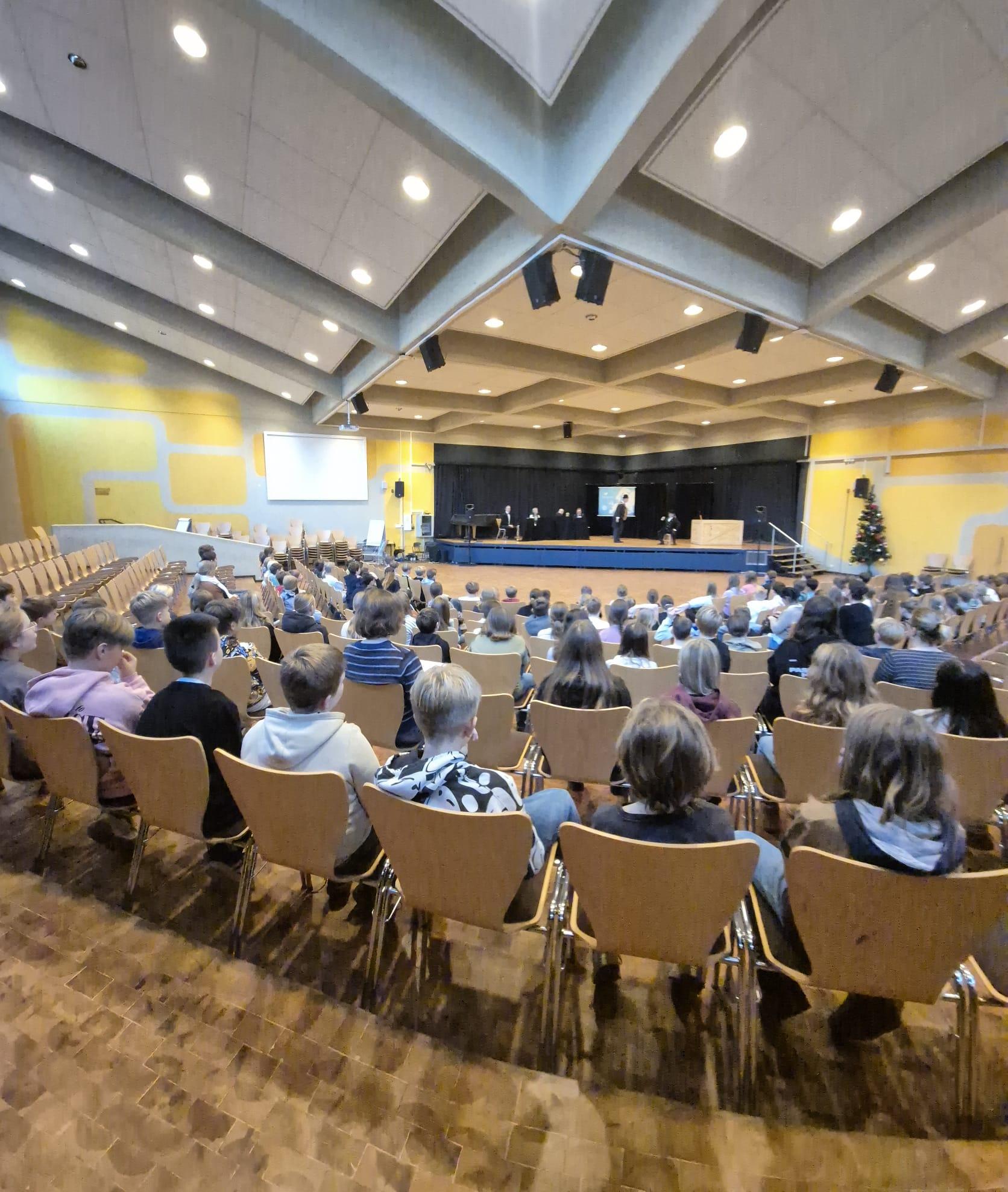 Am 18.12. hatten alle Schülerinnen und Schüler der 5. und 6. Klassen die Möglichkeit, das spannende und zugleich lehrreiche Musiktheaterstück „In 28 Tagen durch Europa“ in der Aula zu erleben.