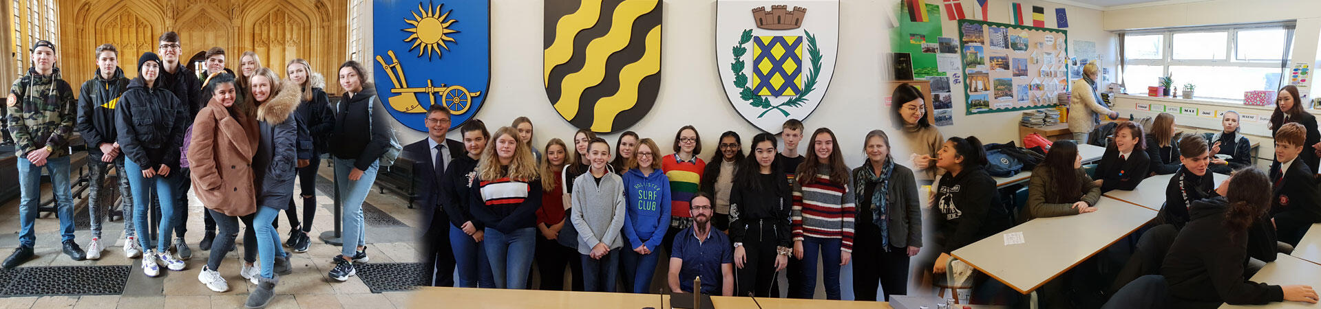 Seit vielen Jahren arbeiten wir mit der Stadtbücherei Neukirchen-Vluyn zusammen. Führungen aller Klassen 5 in der Stadtbücherei sind im Schulprogramm festgeschrieben. Eigene Zeitungsartikel schreiben unsere Achtklässler im Rahmen des „MediaCampus"-Projektes der Funke Mediengruppe oder des Projektes „Texthelden“ der Rheinischen Post. Einige Klassen und Schüler nutzen darüber hinaus das zusätzliche Angebot, als Schüler-Redakteure in außerschulischen Einrichtungen zu recherchieren. Die örtlichen Buchhandlungen unterstützen uns seit Jahren bei unserem jährlichen Lesefest und bei der Stiftung Lesen -Aktion „Ich schenk dir eine Geschichte". Den alljährlichen Friedensplakat-Wettbewerb der 6. Klassen fördert der Lions-Club Fliunnia.